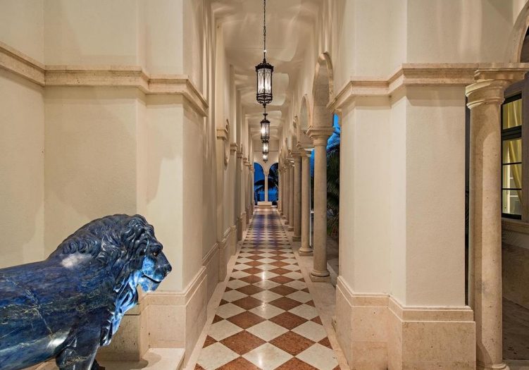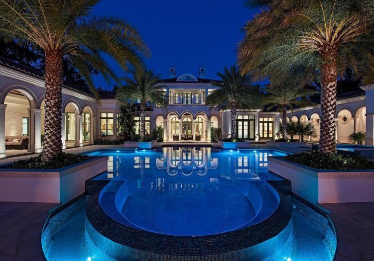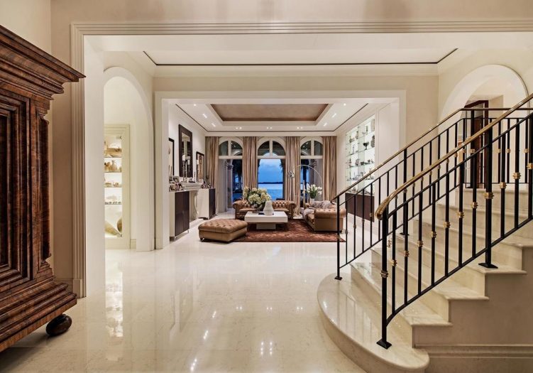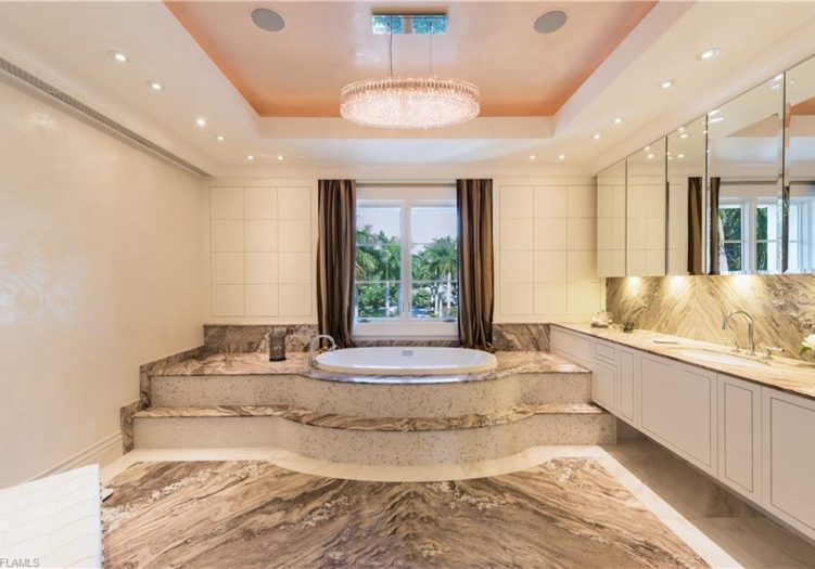 The Most Unique & Unparalleled Luxury Property in SWFL!! Palladian-inspired Fully Furnished LUX Estate situated on over 2+ lush acres of Prime Waterfront creating the Ultimate Oasis. This amazing property is Fully gated w/2 private access roads enjoying a botanical garden setting w/exotic fruit trees and 200 species of Flora from around the world. Features include Direct Gulf access w/2 docks & lift, expansive water views, 65,000-gallon mosaic infinity edge pool, 16-person spa, Solid Granite Driveways, Venetian plastering thru out the inside of the home, Custom Fixtures/Millwork/Built-ins & Hardware, Italian Marble Floors thru out, Professional Kitchen w/African Walnut Finish that features a walk-in commercial refrigerator, 2000 bottle Wine Cellar,State of The Art audio/visual/security system, a spacious work out rm, indoor & outdoor home cinema(s),Elevator, a car collector's dream garage,Mexican Shell Stone Detail, special water filtration system from Japan, High-End Appliances, Custom LED Lighting & a separate 3 Br guest house. Created & Constructed by Michelangelo Custom Homes & Master Carpenters from Germany w/architecture design by Stofft Cooney from Naples.
