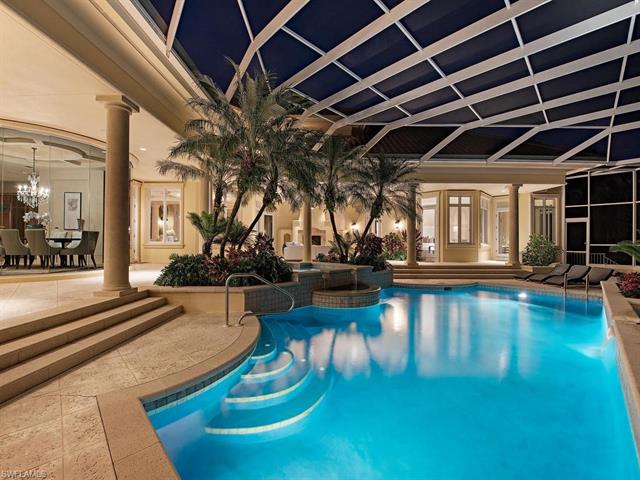 H.14009 - Previously staged but now being offered fully furnished with beautiful, brand new furnishings, INCLUDED in the price! Come and live the Bonita Bay dream lifestyle! Seller will consider a trade, perhaps some creative financing on this 14,363 sq.ft. A/C home! Ground floor master suite is gorgeous, and every room has a beautiful garden view! Truly a grand estate with seven bedroom suites, a theater room, game room, billiards room and more. Bonita Bay's show-stopper! The lavish pool and sunning patios are ideal for entertaining or enjoying privately, amidst the immaculate, palatial grounds, mature trees, meticulously groomed gardens and lovely water features. Situated on a double lakefront lot, 1.3 acres in Bay Woods, the exquisite craftsmanship, and stellar finishes are sure to excite and delight even the most discriminating of buyers. This property exudes European charm from the minute you pull up to the motor court. For the car enthusiast, there is a five car collector's garage. Bonita Bay is one of SW Florida's premiere golf communities with an active Country Club lifestyle, private beach club and marina, 54 holes of championship golf and state of the art amenities.