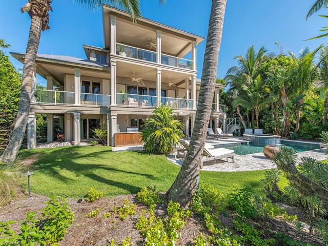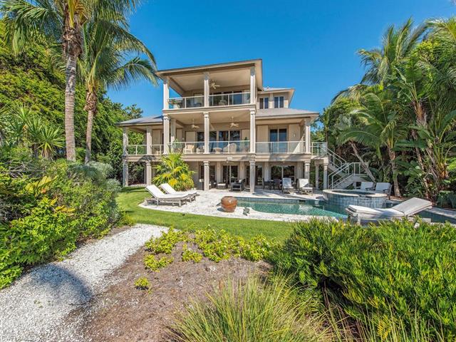 EXQUISITE CUSTOM BUILT HOME ON THE BEACH!!! Featured in FLORIDA DESIGN MAGAZINE! Paradise awaits you at this private beachfront home with 100 Ft of Gulf frontage. This stunning Sanibel beachfront estate offers dramatic gulf front views from all levels including the master shower. Some of the homes many features include grand mahogany entrance door, 3 car garage, all high end appliances, butlers area, elevator, laundry on all levels, movie theater room, custom wood ceilings, double sided fireplace, outdoor grilling on 2 levels, beautiful 3 story maple and poplar hand crafted staircase, outdoor kitchen and resort style saltwater heated pool with spa. Beautifully maintained landscaping with tropical plants, fruit trees and a pathway to your white sandy beach. The Gulfshores Community is a hidden gem on Sanibel Island. The perfect home and location for all that South West Florida has to offer.